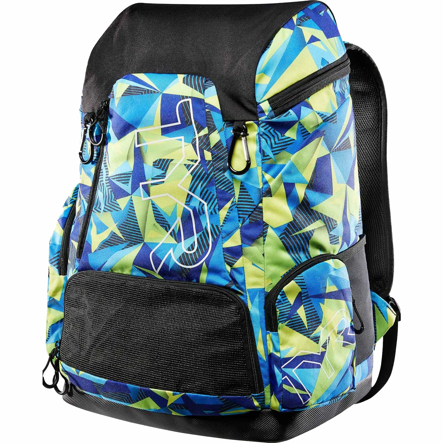 A new twist on an old classic, the TYR Alliance Backpack is packed with state-of-the-art features engineered for athletes on the go. With a cutting-edge space saving design, the 45L maximizes storage without the bulk. In addition to contour shaped padding for ideal ergonomics and lumbar comfort, the new design also includes multiple front and side pockets, expandable mesh pockets for separating wet and dry items, spring hooks for wet suits, a mesh water bottle pocket, adjustable straps and a protective storage space for large electronics.