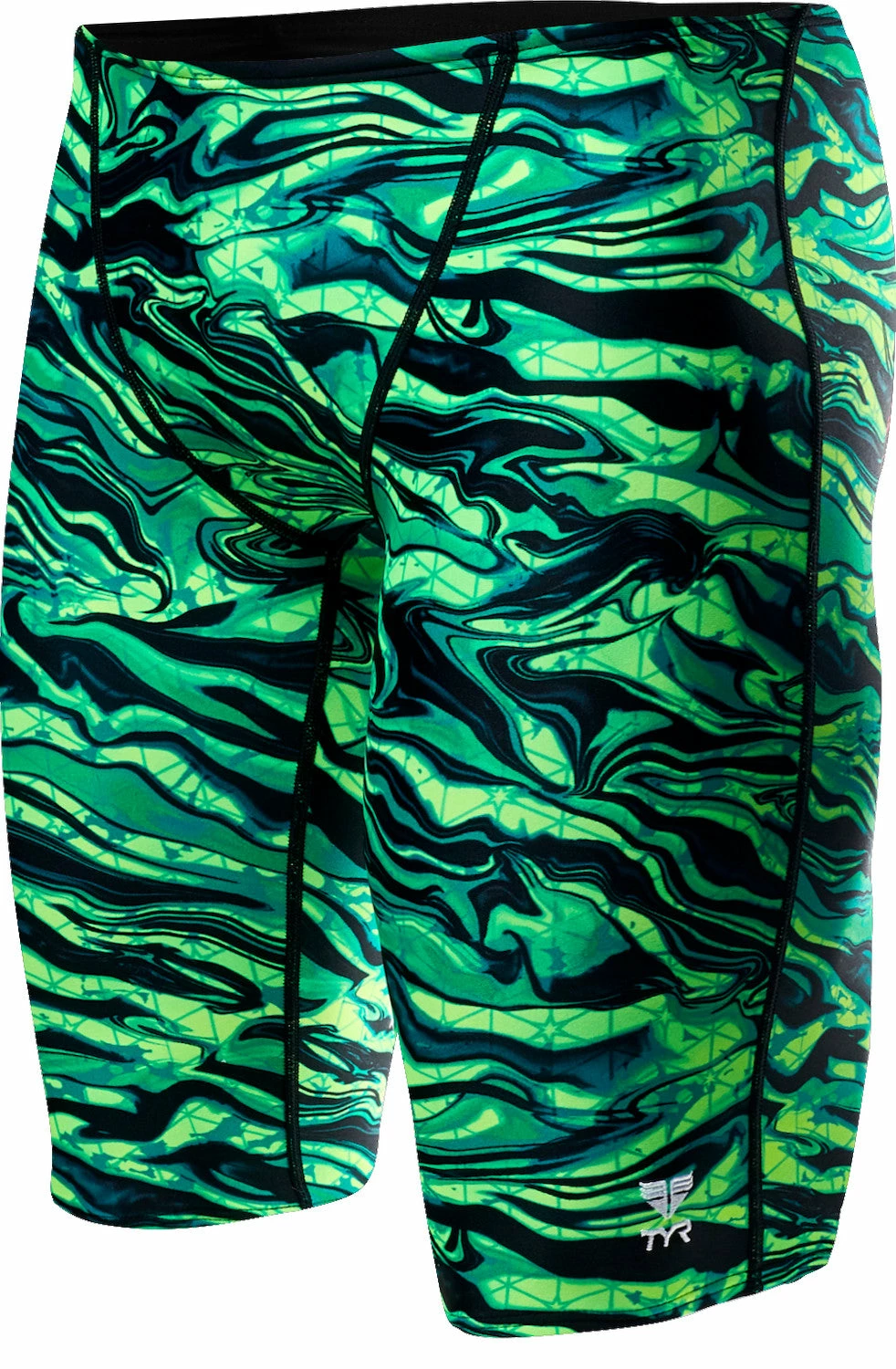 Constructed with TYR’s most durable textile, Durafast Elite® – the SMIR7A performance swimsuit utilizes high denier poly fiber and innovative circular knit construction to combine the strength and colorfastness of polyester with the comfort of spandex. TYR jammer swimsuits stop above the knee and feature both a compressive fit and adjustable drawcord waist. A championship cut and bold print amplify the suit’s highly technical appearance. Allowing for unrestricted mobility, the jammer is ideal for athletes who want reliable coverage during every swim.