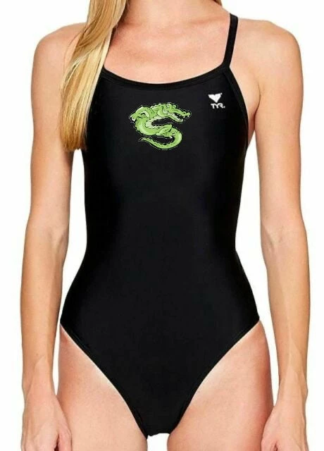 TYR Solid Black with custom team logo available in both thin strap (daimondfit), open back (cutoutfit), and thick strap (maxfit)